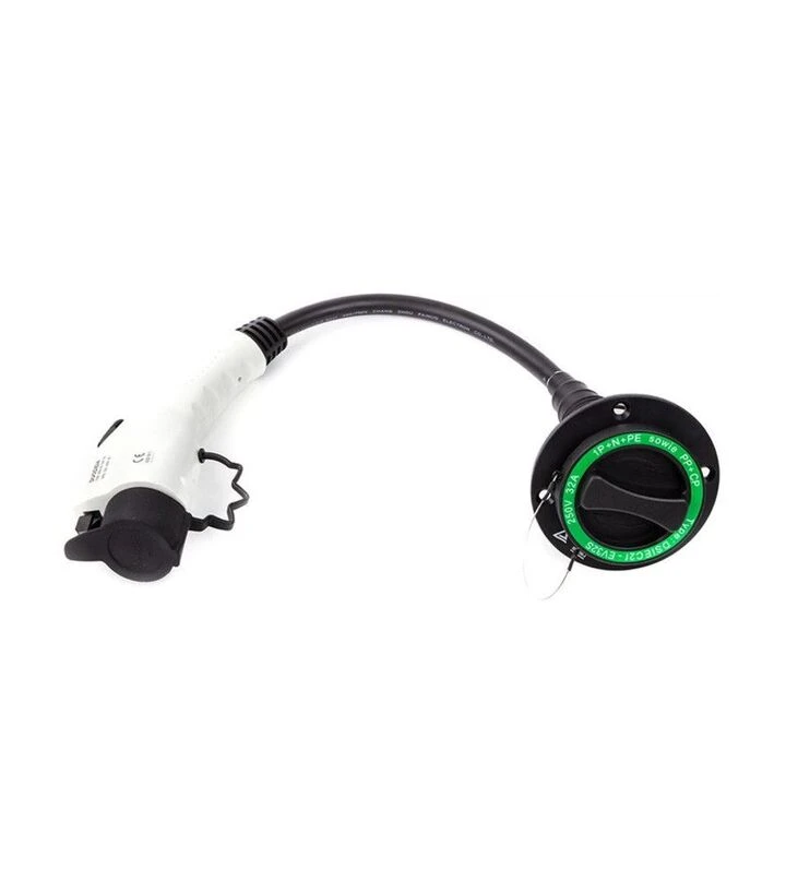 Адаптер кабеля для електромобіля Duosida Type 1 (Female) – Type 2 (Male) (EV200665)Адаптер кабеля Duosida Type 1 (Female) – Type 2 (Male) (EV200665) призначений для підключення електромобіля та зарядної інфраструктури з різними стандартами роз’ємів. Він поєднує конектор Type 1 та Type 2 через короткий кабель 0,3 м, працює в однофазній мережі 240 V AC зі струмом до 32 А. Адаптер дає змогу використовувати зарядні станції або кабелі іншого стандарту без заміни основного обладнання, зберігаючи електробезпеку та роботу штатних протоколів заряджання.