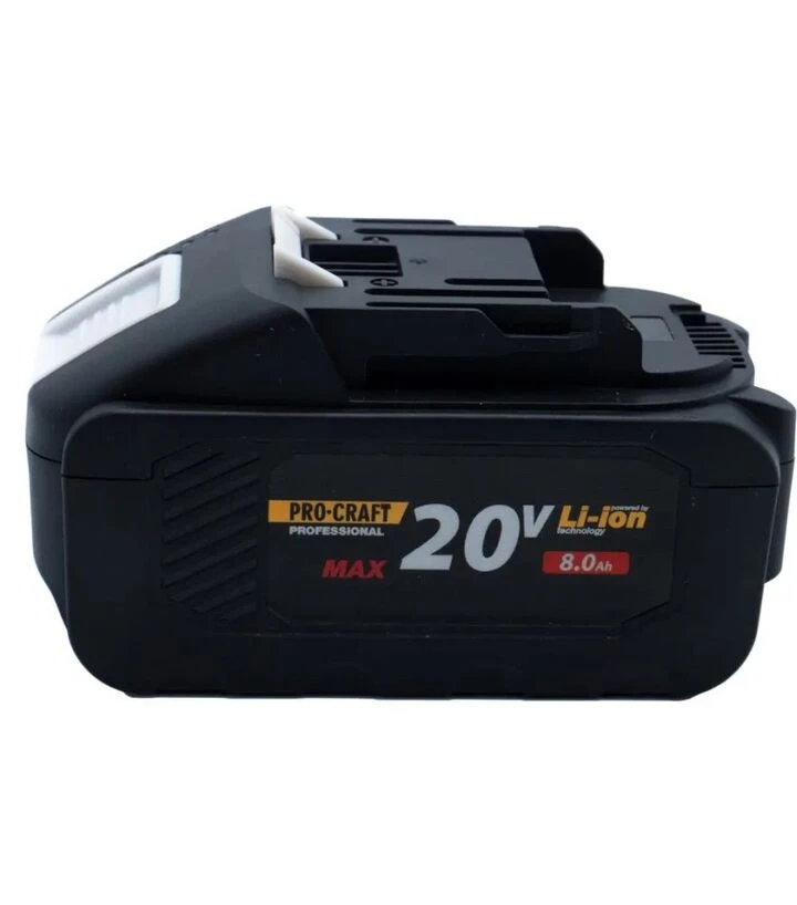 Модель Universal 20/8 (030211) створена для користувачів, яким потрібна батарея з високою ємністю, щоб інструмент працював довго без перерв. Завдяки літій‑іонній конструкції забезпечується стабільний струм і мінімальні втрати енергії при зберіганні. Корпус батареї має міцну конструкцію, передбачено електронні захисти. Згідно з характеристиками, вага становить близько 0,675 кг, а напруга 20 В відповідає всій платформі PROCRAFT. :contentReference[oaicite:2]{index=2}