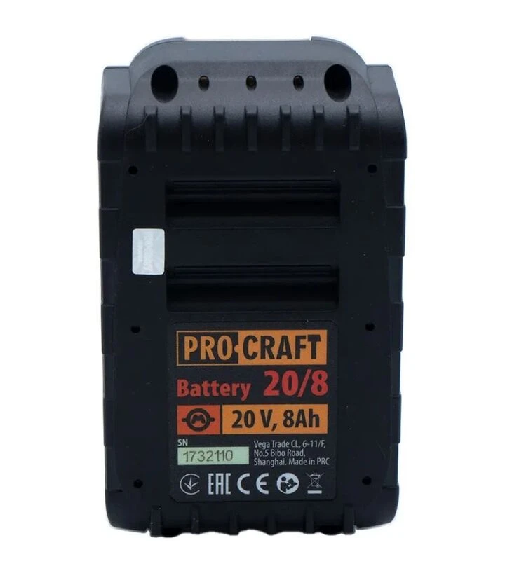 PROCRAFT Universal 20/8 (030211) - акумулятор, який поєднує високу ємність і зручність використання. Він допоможе тримати ваші інструменти готовими до роботи у різних умовах.