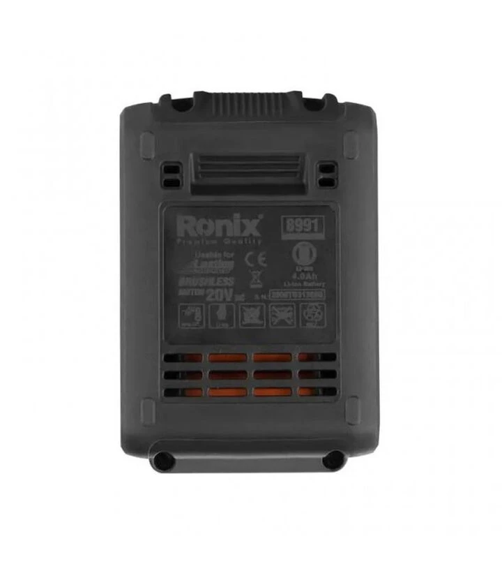 Ronix 4Ач (8991) - збалансований акумулятор для тривалих завдань. Має високу ємність, вбудований захист і повну сумісність з 20 В інструментами Ronix. Практичне рішення для щоденного користування.