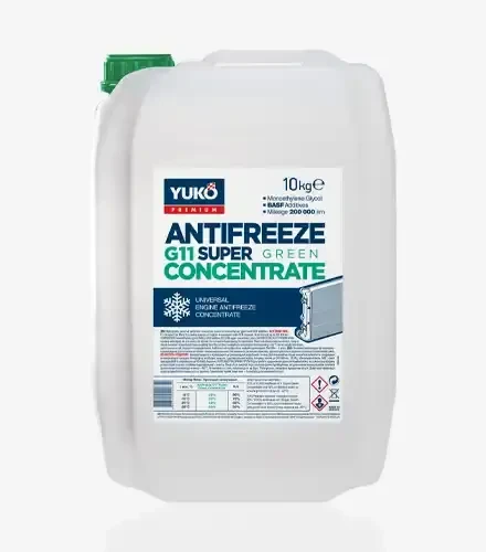 Антифриз Yuko -40 Super G11 зелений, 10 кг Yuko -40 Super G11 зелений -готова до використання охолоджувальна рідина на основі моноетиленгліколю з пакетом присадок BASF. Забезпечує ефективний захист системи охолодження від корозії, перегріву та замерзання при температурах до –42 °C. Підходить для компонентів з алюмінію, сталі, чавуну та міді. Не містить гліцерину, що запобігає утворенню осаду в системі та забезпечує її стабільну роботу. Yuko -український виробник технічних рідин, орієнтований на реальні умови експлуатації транспорту й техніки.