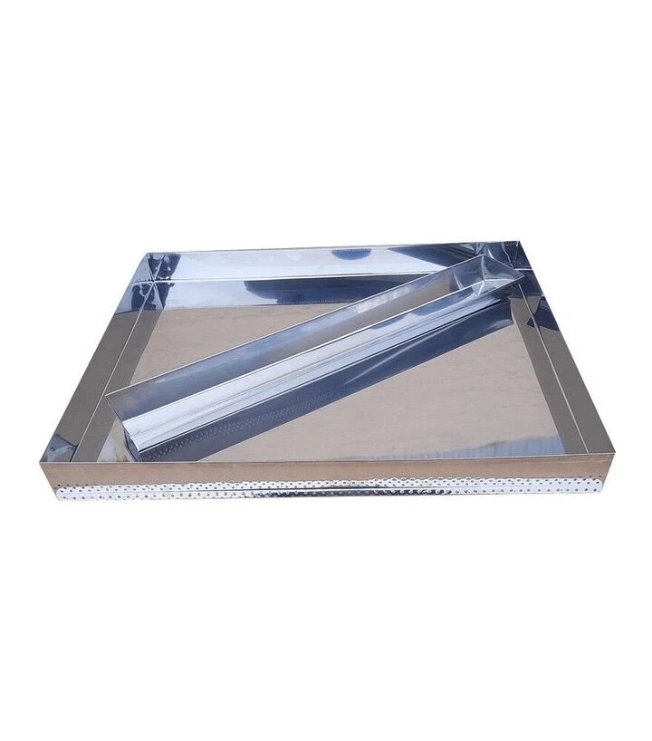 Арматура сонячної воскотопки на 2 рамки, нержавіюча сталь (1120) - це комплект лотка і коритця для впорядкованого плавлення та збору воску в сонячній воскотопці. Підходить для промислових і саморобних ящиків, допомагає зібрати віск без розтікання та спростити догляд після роботи.