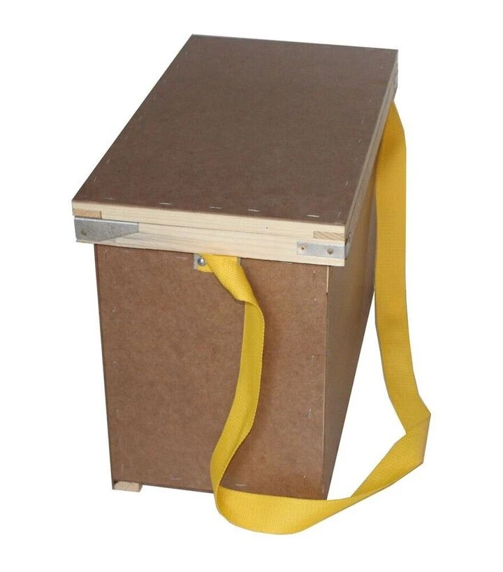 Рамки встановлюються всередину ящика у вертикальному положенні. Після завантаження кришка щільно закривається, фіксуючи вміст під час перенесення. Завдяки ручці ящик зручно переносити однією рукою. Конструкція дозволяє швидко дістати рамки та повернути їх назад без додаткових інструментів.
