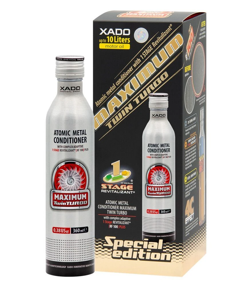 Атомарний кондиціонер металлу Maximum Twin Turbo з ревіталізантом 1 Stage, ХАДО - це ефективний продукт для підтримки та покращення роботи вашого двигуна. Його використання допоможе знизити ризики та витрати, пов'язані з ремонтом, а також забезпечить надійність вашого автомобіля на тривалий час.