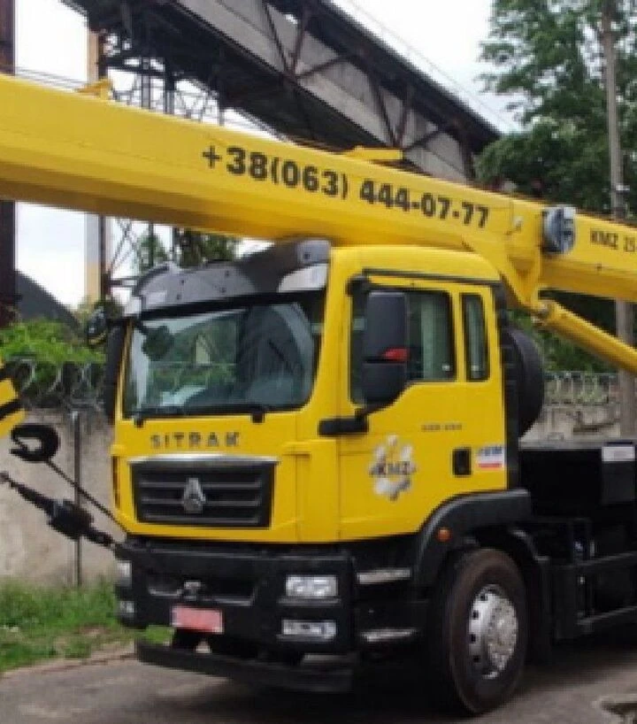 Автокран KMZ 25–40 - самохідний стріловий кран на шасі SITRAK 6×4 з вантажопідйомністю до 25 000 кг, висотою підйому до 30 м і вильотом до 25,52 м. Підходить для будівельних і навантажувально-розвантажувальних робіт, де важливі робочий діапазон, мобільність і контроль безпеки під час підйому.