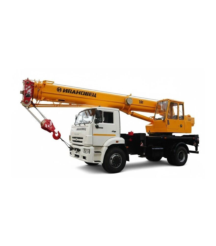 Автокран КС-35714К-3 на базі шасі КамАЗ-53605 з колісною формулою 4х2 призначений для виконання підйомних і монтажних робіт у міських та промислових умовах. Вантажопідйомність 16 т і вантажний момент 48 тм дозволяють працювати з конструкціями та обладнанням на будівельних майданчиках. Компактні габарити 10000×2500×3780 мм забезпечують зручність пересування дорогами загального користування.