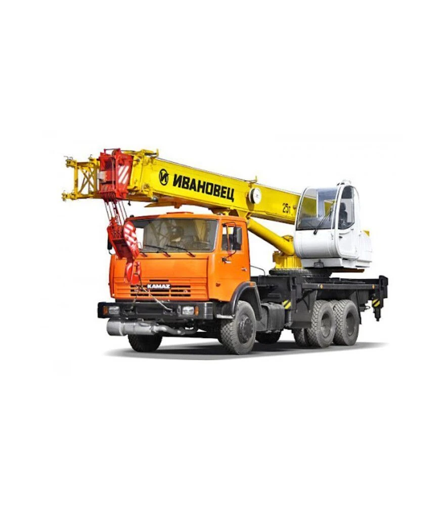 Автокран КС-45717К-1 змонтований на базових шасі КАМАЗ-53215 або КАМАЗ-65115 з колісною формулою 6×4 та призначений для підйомно-монтажних робіт у будівництві, комунальному та промисловому секторі. Вантажопідйомність становить 25 т, а при роботі з отруйними та вибухонебезпечними вантажами - до 20 т. Телескопічна стріла довжиною до 21 м з можливістю встановлення гуська 7 м дозволяє виконувати роботи на різних висотах і вильотах.