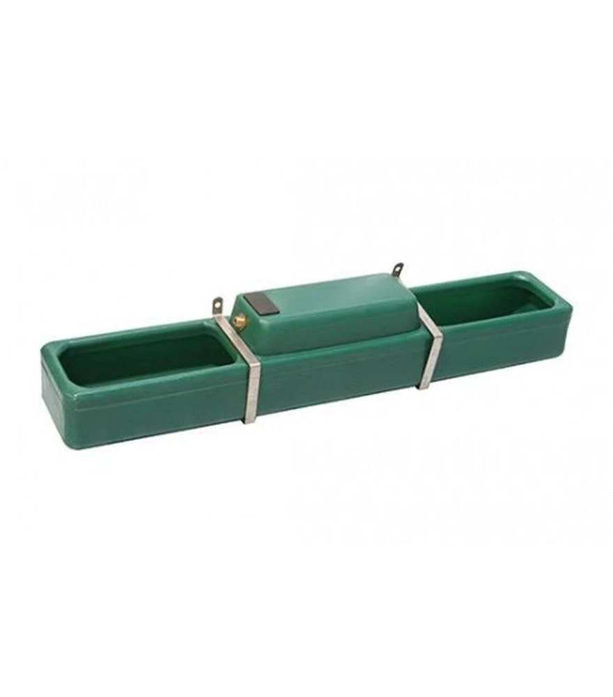 Монтаж здійснюється за допомогою кронштейнів з нержавіючої сталі між загонами. Підключення до трубопроводу через клапан 25 мм. Розміри виробу: довжина -1250 мм, ширина -237 мм, висота -150 мм.