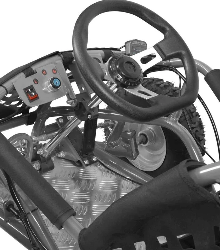 Модель HECHT 54812 SILVER розрахована на користувачів, які хочуть поєднати активний відпочинок на природі з простотою використання та автономністю електричного приводу. Максимальне навантаження, яке може витримувати багі - до 80 кг, що робить її зручною для підлітків і дорослих із помірною вагою. Багі обладнаний заднім приводом і дисковими гальмами - це підвищує безпеку руху і забезпечує ефективне гальмування при зупинці. Дискові гальма працюють стабільно та надійно, що особливо важливо під час зміни швидкості або раптового гальмування.