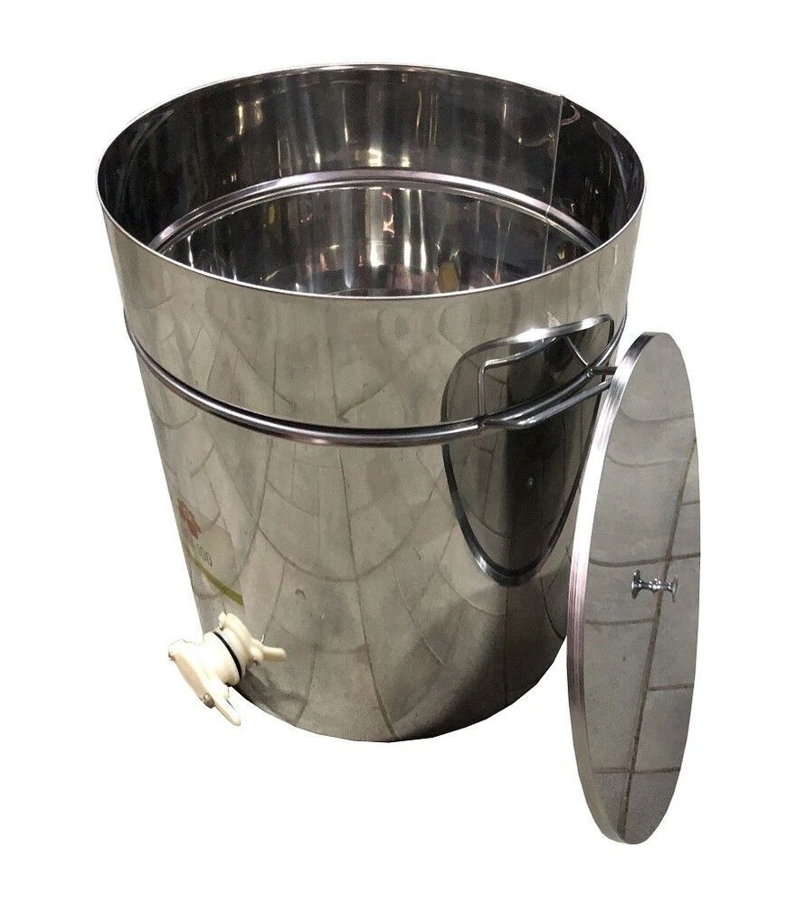 Бак відстійник призначений для відстоювання та подальшої фасовки меду після відкачування. Його використовують для стабілізації продукту перед розливом у тару, коли важливо отримати однорідну консистенцію без повітряних бульбашок і дрібних домішок. Ємність виготовлена з харчової нержавіючої сталі, стійкої до дії органічних кислот і вологи. Конструкція бака розрахована на роботу з більшими об’ємами меду та підходить для регулярного використання в пасічному господарстві.