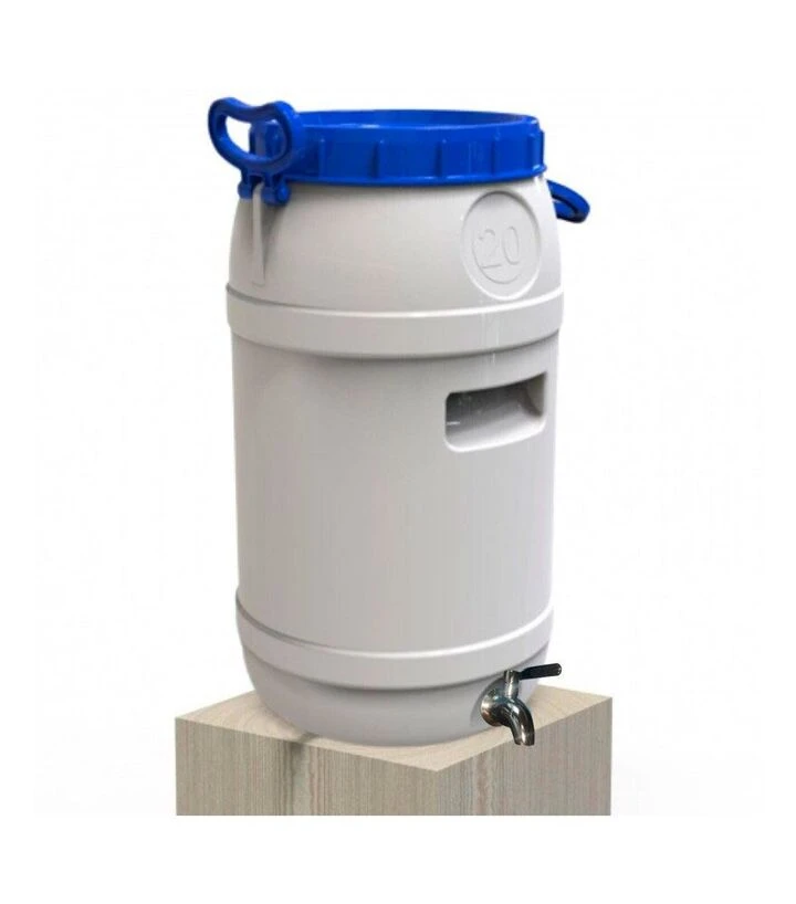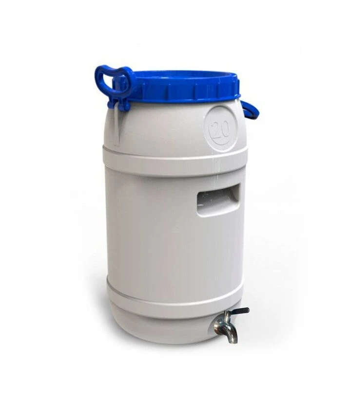 Модель комплектується краном із нержавіючої сталі AISI 304, який відзначається високою зносостійкістю, корозійною стійкістю та повною безпечністю для контакту з харчовими продуктами. Кран забезпечує плавний, контрольований злив і підходить для тривалого використання. Отвір під кран уже виконаний виробником, що дозволяє встановити його без свердління. Уся фурнітура (кран, муфта, штуцер, ущільнювачі) знаходиться всередині бідона.