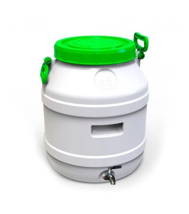 Бідон Євро Пласт 45 л з нержавіючим краном AISI 304 та зеленою кришкою - це практичне, довговічне та універсальне рішення для щоденного використання у побуті й господарстві.