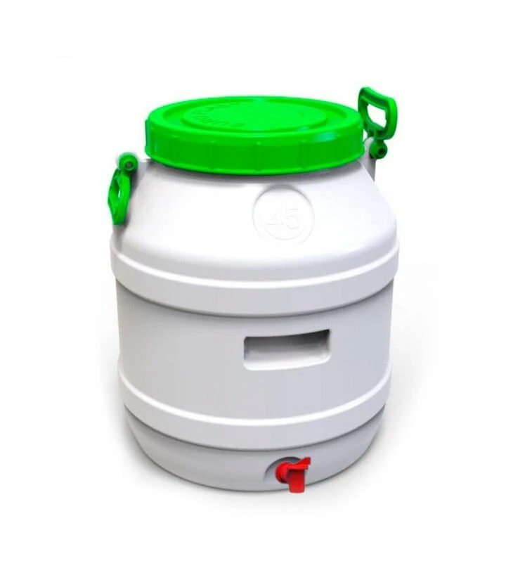 Харчовий бідон Євро Пласт об’ємом 45 літрів - це містка та практична пластикова ємність, створена для зберігання, транспортування і зручного використання рідких та сипучих продуктів. Виготовлений із якісного харчового пластику, бідон не має стороннього запаху, не вступає в реакцію з вмістом і є повністю безпечним для питної води та харчових продуктів.