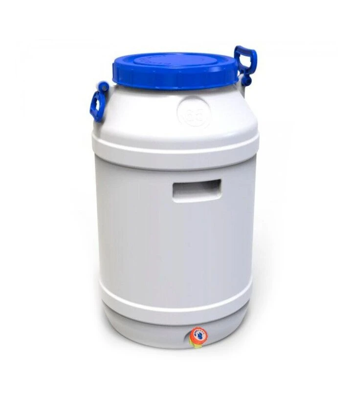 Бідон наповнюється через широку горловину, що зручно для роботи з водою, молоком, медом або сипучими продуктами. Отвір під кран виконаний на виробництві, а фурнітура знаходиться всередині ємності. Після встановлення вентильний пластиковий кран дозволяє дозовано зливати вміст, контролюючи потік і зменшуючи ризик проливання.