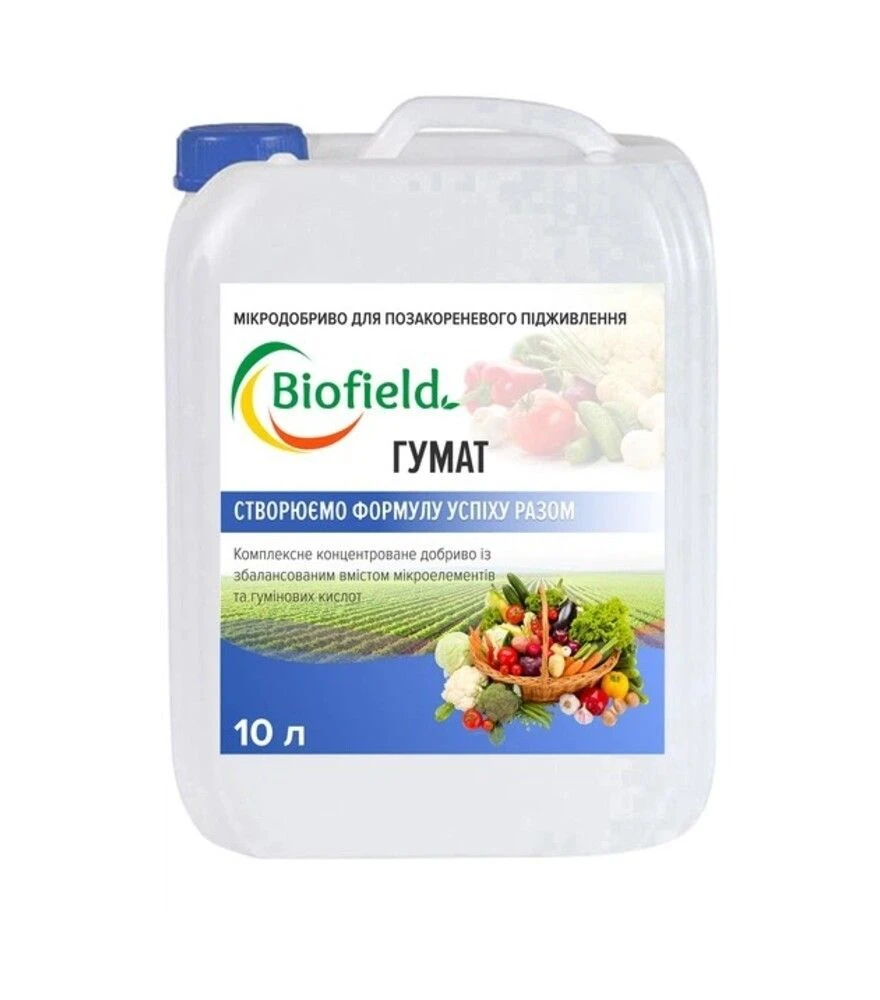Концентроване рідке мікродобриво на основі гумінових і фульвокислот для рослинництва, овочівництва, садівництва, квітникарства, декоративно-паркового садівництва та лісництва; Призначене для обробки по вегетації, внесення в ґрунт, обробки насіння, замочування саджанців/посадкового матеріалу; Вміст основної активної речовини зазначено як 3% або 30 г/л