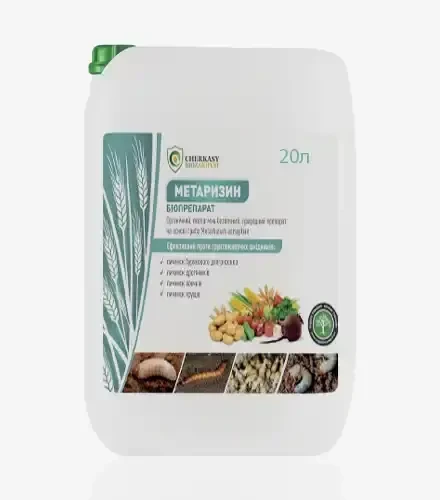 Метаризин — це біологічний препарат на основі гриба Metarhizium anisopliae, який є ефективним та екологічно безпечним засобом проти личинок молодшого віку, а також проти шкідників, таких як травневий хрущ, капустянки, колорадський жук, довгоносики, ковалики та дротяники. Препарат використовується для обробки ґрунту перед оранкою, скопуванням, під час садіння та рихлення міжрядь сільськогосподарських культур.