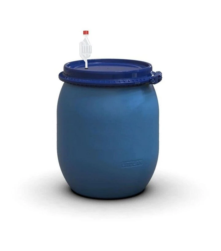 У процесі бродіння всередині ємності утворюється вуглекислий газ, який виводиться через S-подібний винний клапан. Двокамерна конструкція гідрозатвора забезпечує контрольований вихід газів і водночас запобігає потраплянню повітря всередину бочки. Це створює стабільне середовище для ферментації та зберігає смакові властивості продукту. Кришка встановлюється з ущільнювачем і фіксується хомутом, що гарантує герметичність протягом усього процесу.