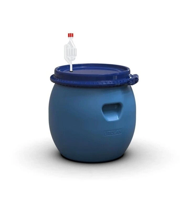 Бочка для бродіння герметична 35 л з винним клапаном S-подібнимГерметична бочка для бродіння об’ємом 35 л призначена для ферментації вина, пива, квасу, медових напоїв, а також для засолювання овочів і зберігання харчових продуктів. Ємність виготовлена на українському заводі Litolan з сертифікованого харчового пластику та має багатошарову конструкцію, що забезпечує міцність, довговічність і стабільні умови всередині під час процесу бродіння. Компактний об’єм 35 л зручний для домашнього виноробства та невеликих партій продукту.