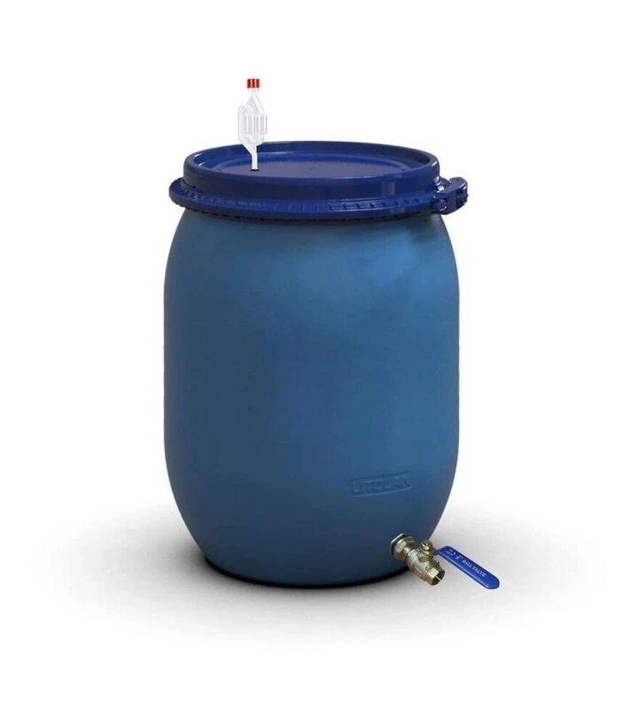 Під час бродіння всередині бочки утворюється вуглекислий газ, який виводиться через S-подібний винний клапан. Двокамерна конструкція гідрозатвора забезпечує контрольований вихід газів і водночас запобігає потраплянню повітря всередину ємності. Це дозволяє підтримувати стабільні умови ферментації та зберігати якість напою. Кришка встановлюється з ущільнювачем і фіксується хомутом, що забезпечує герметичність. Злив готового продукту здійснюється через кран 1/2" з нержавіючої сталі AISI 304, який безпечний для харчових продуктів і стійкий до корозії.