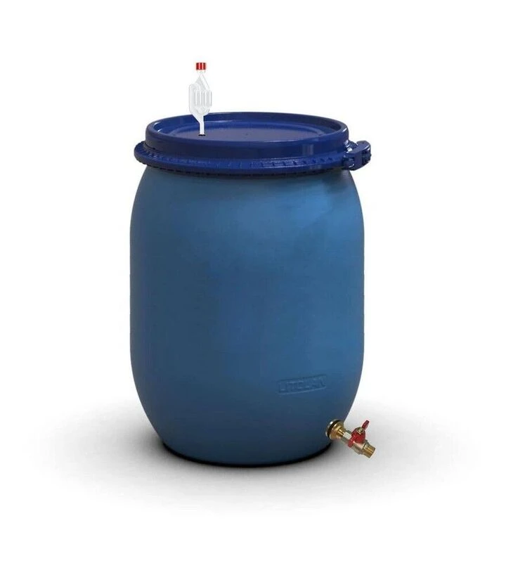 Під час процесу бродіння всередині бочки утворюється вуглекислий газ, який відводиться через S-подібний винний клапан. Такий гідрозатвор є двокамерним і забезпечує контрольований вихід газів, не допускаючи потрапляння кисню всередину ємності. Це дозволяє зберегти стабільність ферментації та захистити напій від окислення. Кришка встановлюється з ущільнювачем і фіксується хомутом, що забезпечує герметичність. Злив готового продукту здійснюється через латунний кран діаметром 1/2", який зручний для розливу без переливання.