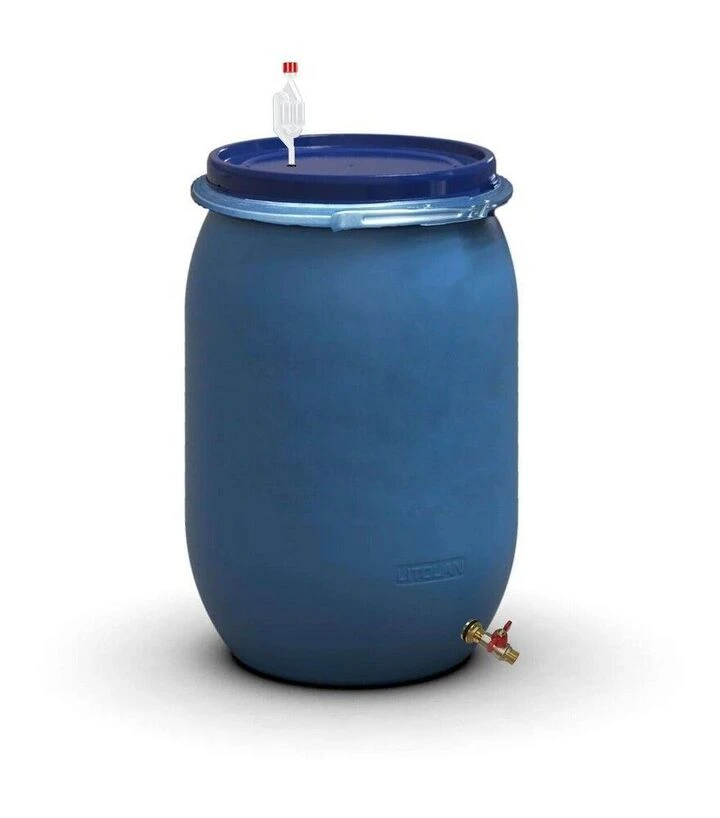 Бочка для бродіння 150 л з гідрозатвором S, металевим хомутом та латунним зливним краном 1/2"Герметична бочка для бродіння призначена для ферментації вина, пива, квасу, медових напоїв, а також для соління й квашення овочів. Ємність підходить для домашнього використання та невеликих фермерських господарств, де важлива стабільність процесу та контроль якості продукту. Вертикальна циліндрична форма зручна для розміщення у підвалах, коморах і виробничих приміщеннях. Бочка виготовлена з сертифікованого харчового пластику, який не впливає на смак і запах вмісту та придатний для тривалого контакту з продуктами.