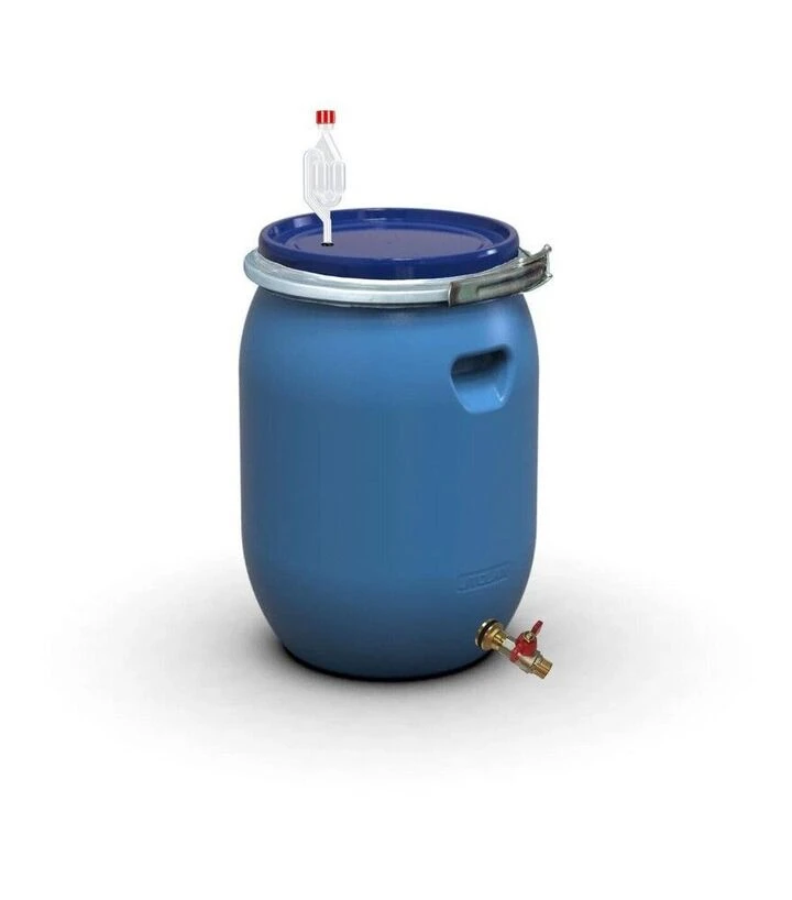Бочка для бродіння 55 л з гідрозатвором S, металевим хомутом та латунним краном 1/2" - це зручне та надійне рішення для якісної ферментації напоїв і харчових заготовок у домашніх умовах.