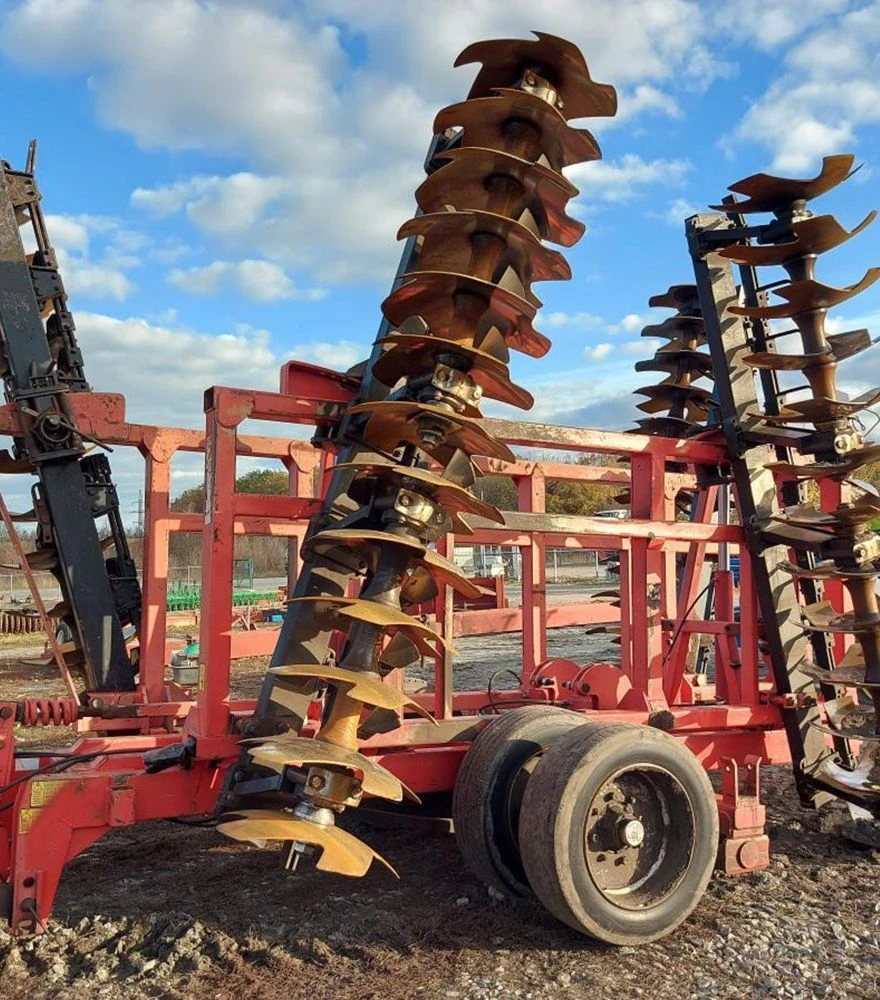 Дискова борона Quivogne APVRS-FF - це надійний інструмент для обробки ґрунту, який забезпечує ефективне подрібнення та перемішування рослинних залишків. Модель 2014 року має 52 диски діаметром 810 мм і товщиною 10 мм, що дозволяє досягати робочої ширини 7,30 метра. Ця борона підходить для використання на великих площах, забезпечуючи високу продуктивність при рекомендованій швидкості 12 км/г. Транспортна ширина становить 3,0 метра, що робить її зручною для перевезення. Рекомендується використовувати з трактором потужністю від 300 л.с.