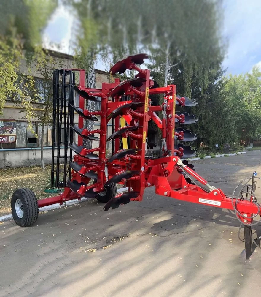 Борона оснащена двома рядами дисків, що забезпечують якісне подрібнення та перемішування рослинних залишків. Всі конструктивні елементи виконані з міцної сталі, що гарантує довгий термін служби навіть при інтенсивній експлуатації. Система захисту підшипників дозволяє працювати на запиленому полі без додаткового обслуговування після кожної зміни.
