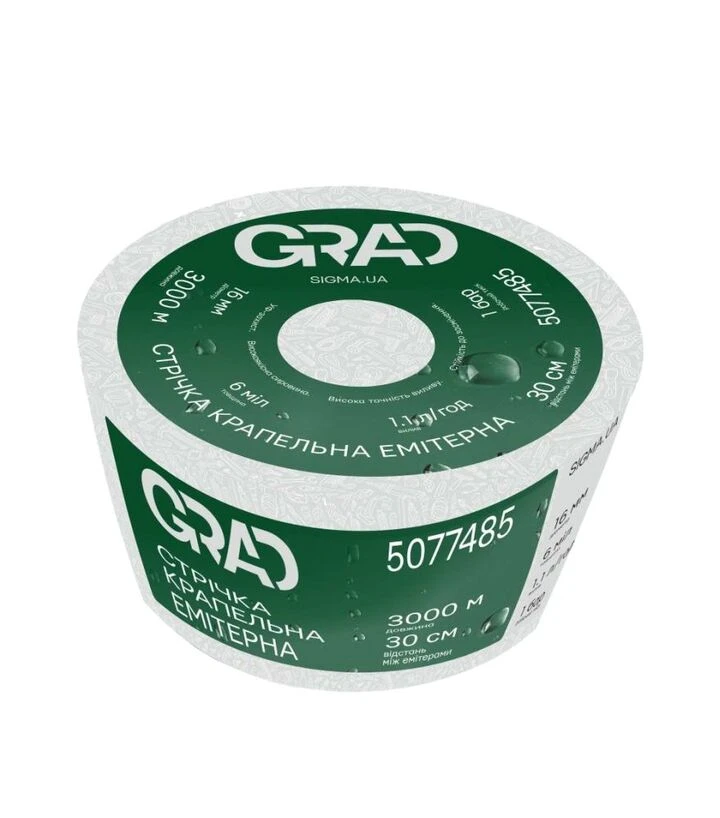 Cтрічка крапельна Grad з плоским емітером Ø16мм, 30см, 6міл, 1,38л, 1000м (5077315)