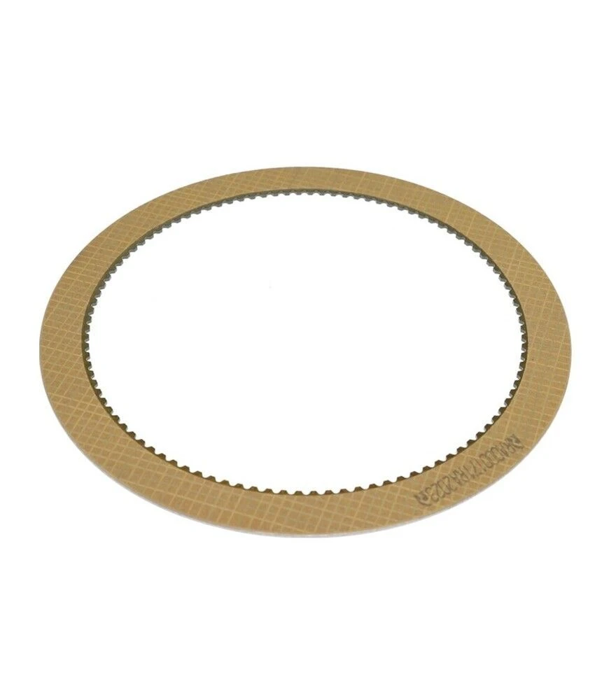 Фрикційний диск коробки передач використовується у трансмісії техніки John Deere для передачі крутного моменту між елементами вузла та забезпечення стабільної роботи КПП під навантаженням. Деталь входить до складу муфтових механізмів і працює за рахунок тертя між контактними поверхнями, що дозволяє передавати зусилля без втрат і забезпечувати плавність перемикання передач. У процесі роботи диск піддається впливу високих температур, гідравлічного тиску та значних механічних навантажень, тому важливими є якість матеріалу та точність виготовлення. Рівномірна структура фрикційного шару забезпечує стабільне зчеплення та знижує ризик нерівномірного зносу. Використання цього диска сприяє зменшенню пробуксовки, покращенню керованості трансмісією та підтримці ефективності роботи техніки навіть у складних умовах експлуатації.