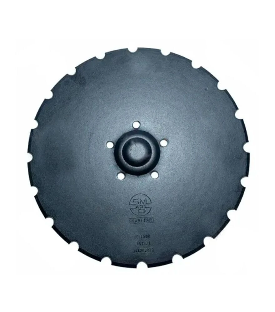 Диск типу «ромашка» Ø370×5 мм використовується у сівалках Väderstad як робочий елемент сошника для обробітку ґрунту під час посіву. Деталь призначена для розрізання верхнього шару ґрунту та рослинних залишків, формування посівної борозни і стабільної роботи посівного вузла. Зубчаста форма диска покращує проникнення у ґрунт та сприяє рівномірному відкриванню рядка під час висіву.