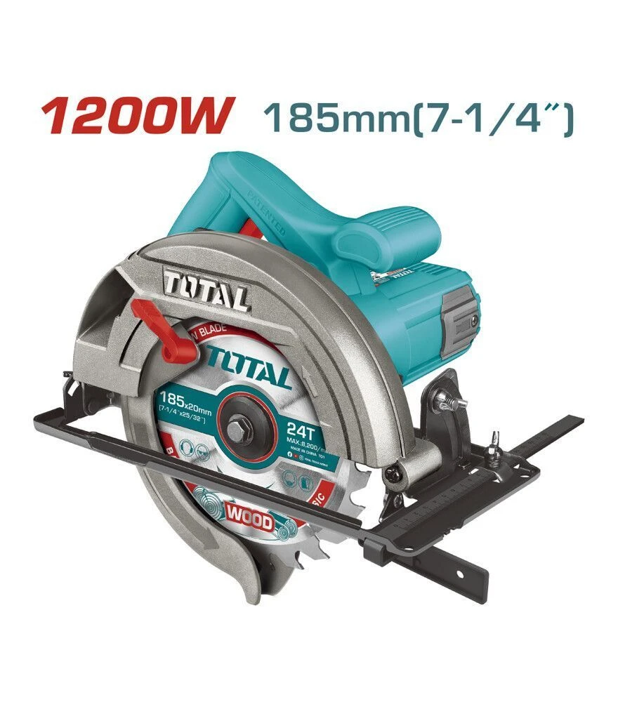 Дискова (циркулярна) пила TOTAL TS11218576 Циркулярна пила TOTAL TS11218576 працює від мережі та має потужність 1200 Вт, що дозволяє легко виконувати прямолінійні різи в деревині та плитних матеріалах. Диск діаметром 185 мм обертається на швидкості до 5000 об/хв, забезпечуючи чистий і швидкий зріз. Пила підтримує роботу під кутом від 0 до 90 градусів із максимальною глибиною різу 65 мм при 90° і 45 мм при 45°. Надійна опора, зручне регулювання глибини та кута, компактний корпус - усе це полегшує роботу і робить інструмент зручним у щоденному використанні.