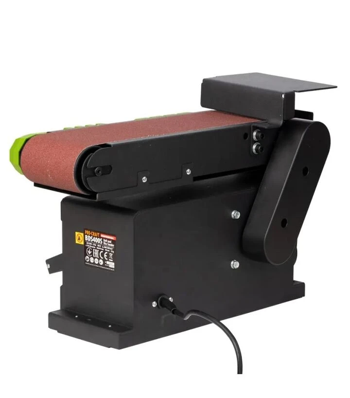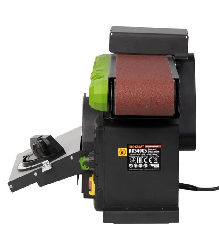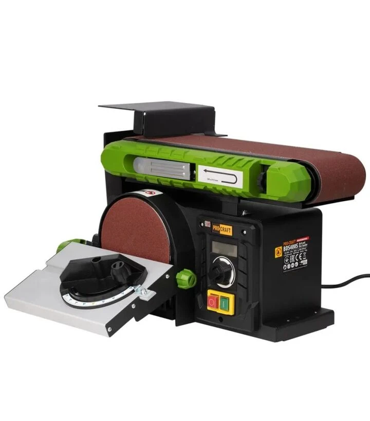 Дисково-стрічковий шліфувальний верстат Procraft BDS-400S (010400) Дисково-стрічковий шліфувальний верстат ProCraft BDS-400S призначений для обробки деревини та інших матеріалів у професійних і побутових майстернях. Потужність 400 Вт забезпечує ефективне шліфування, а комбінований модуль (дисковий та стрічковий) дозволяє виконувати різні види обробки на одному верстаті. Регульований стіл диска (0–45°) та стіл стрічки (0–90°) забезпечують точність і комфорт при роботі. Вага 17 кг і габарити 230x152 см роблять верстат стійким і надійним для стаціонарного використання. ProCraft - виробник інструментів, який пропонує надійні та практичні рішення для професійного та побутового застосування, приділяючи увагу довговічності та зручності експлуатації.