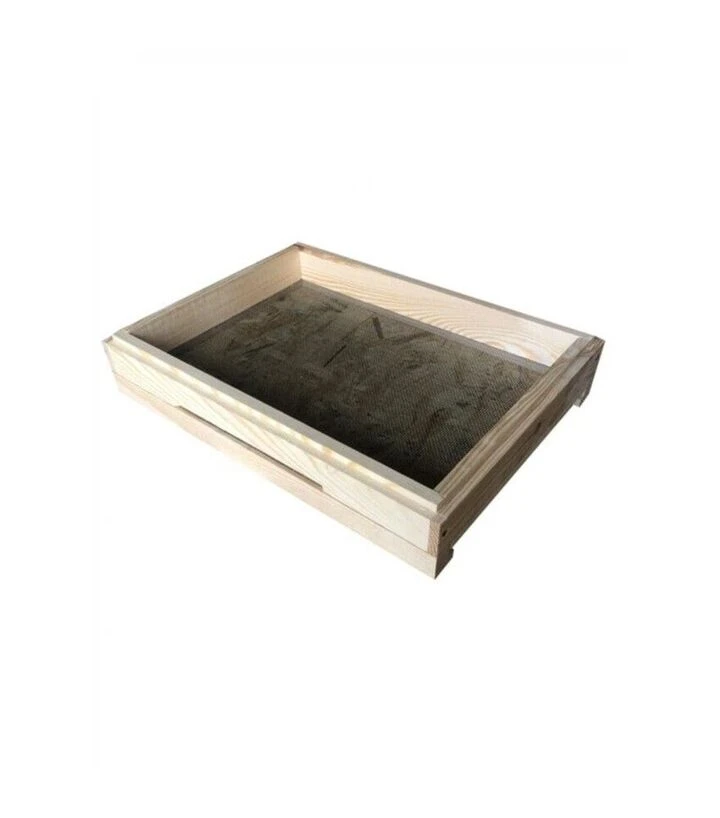Дно сітчасте знімне на Український 12-ти рамковий та 8-ми рамоковий вулик (UUK001UA)Знімне сітчасте дно призначене для Українського 12-рамкового вулика або магазинного корпусу на 8 напіврамок 145 мм. Конструкція забезпечує підрамковий простір 20–25 мм для вентиляції гнізда та відведення зайвої вологи. Основа виготовлена з сосни 1 сорту, товщина стінок 25 мм. Сітка металева ткана з низьковуглецевої сталі, осередок 2×2 мм, дріт 0,5 мм. Габарити 50,5×37 см, висота 8 см з ніжкою (5,5 см без ніжки), вага 2,65 кг.