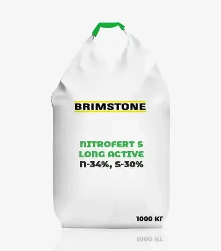 Добриво азотне Nitrofert S Long Active N-34%, S-30% (Нітроферт С Лонг Актів) — високоефективне гранульоване азотно-сірчане добриво з вмістом 34% азоту та 30% сірки. Забезпечує стабільне та тривале живлення культур, підвищує врожайність і якість продукції. Підходить для широкого спектра культур та типів ґрунтів.