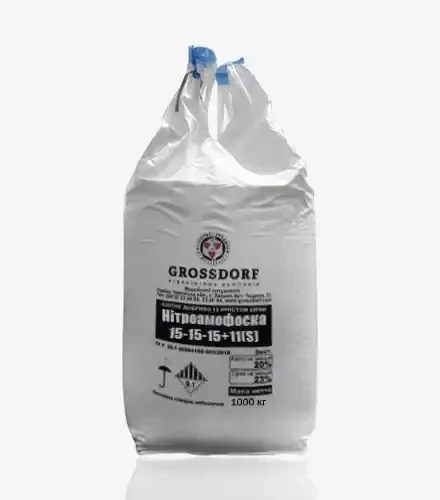 Нітроамофоска 15-15-15+11(S) — це комплексне гранульоване добриво, яке підвищує плодючість ґрунту та якість врожаю завдяки збалансованому вмісту азоту, фосфору, калію і сульфатної сірки. Це добриво є ідеальним для використання в зернових, овочевих, фруктових та ягідних культурах.