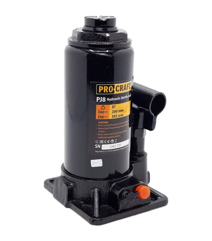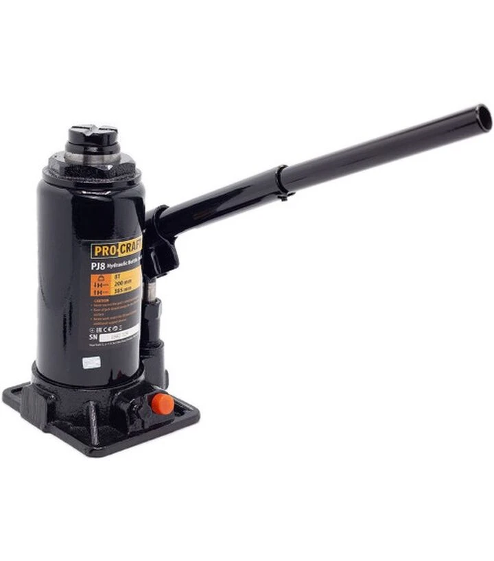 Procraft PJ 8 виготовлений зі сталі, що робить його стійким до механічних навантажень під час роботи з важкою технікою. Гідравлічна система працює плавно, а ручний насос дозволяє точно контролювати підйом. Домкрат підходить для автосервісів, гаражного використання та господарських задач. Модель компактна, не потребує складного обслуговування та швидко готується до роботи.