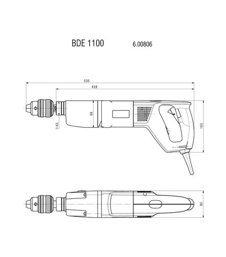 Metabo BDE 1100 - це мережевий дриль для стабільної роботи зі свердлами великого діаметра та міксерами. Поєднання потужного двигуна, двошвидкісного редуктора й системи захисту забезпечує надійність і контроль у щоденній експлуатації. Інструмент розрахований на тривалий ресурс і точність виконання робіт у майстерні чи на виробництві.