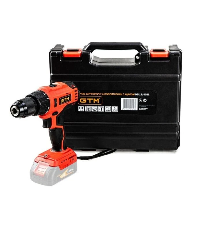 Дриль-шурупокрут акумуляторний ударний GTM без АКБ і ЗП (DSI18/60BL_BARE TOOL)