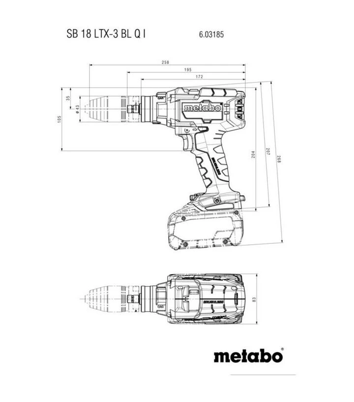 Дриль-шуруповерт ударний акумуляторний Metabo SB 18 LTX-3 BL Q I, 18 В, без АКБ та ЗП (603185850) забезпечує стабільну тягу 130 Нм, частоту ударів до 38000 уд/хв і швидку зміну оснащення завдяки системі QuickPlus. Раціональне рішення для професійної роботи з можливістю використання наявних акумуляторів CAS.