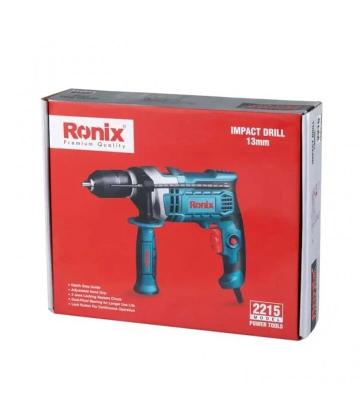 Ronix 2215 - функціональний ударний дриль для щоденних робіт, який забезпечує зручність, силу та швидке налаштування завдяки швидкозатискному патрону й регульованій швидкості.