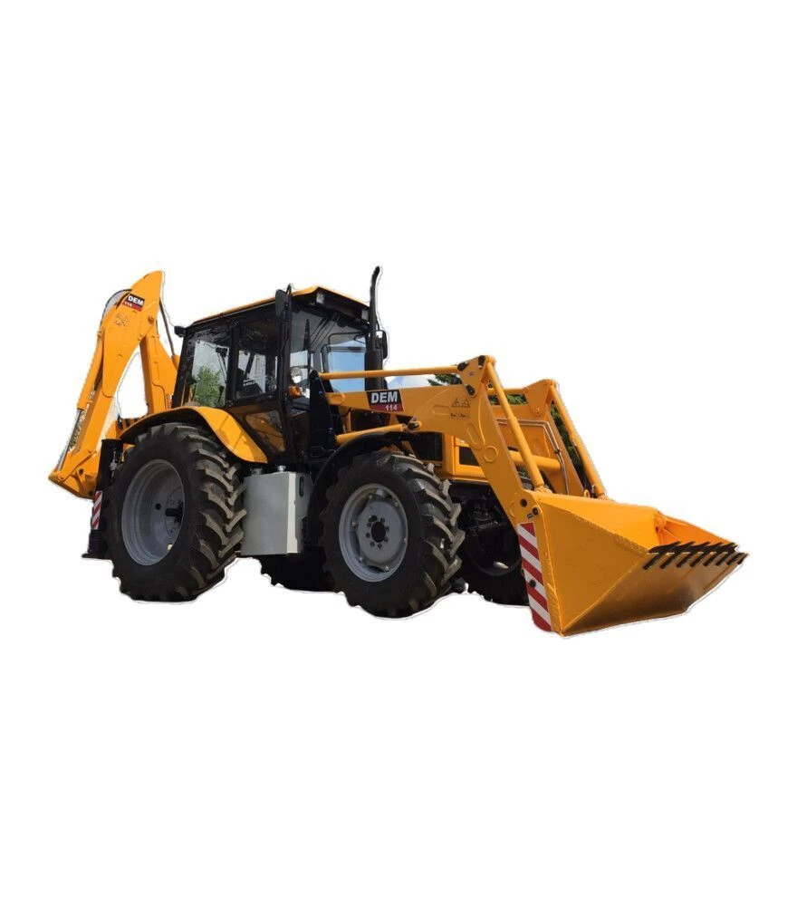 ДЕМ-114 - екскаватор-навантажувач на базі трактора «Беларус-92П», призначений для земляних робіт, навантаження матеріалів і робіт у тісних умовах. Фронтальний навантажувач має вантажопідйомність до 1000 кг і підтримує паралельний рух ковша під час підйому. Екскаваторне обладнання зі зміщенням осі копання допомагає працювати вздовж стін, огорож і на вузьких ділянках. Компактне складання в транспортному положенні зменшує навантаження на задній міст і спрощує переміщення між об’єктами.