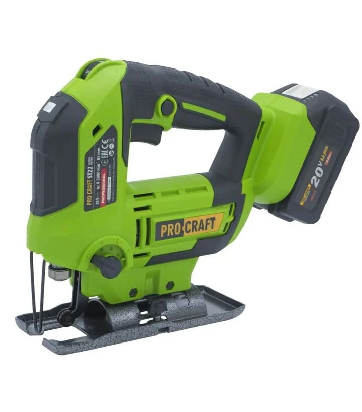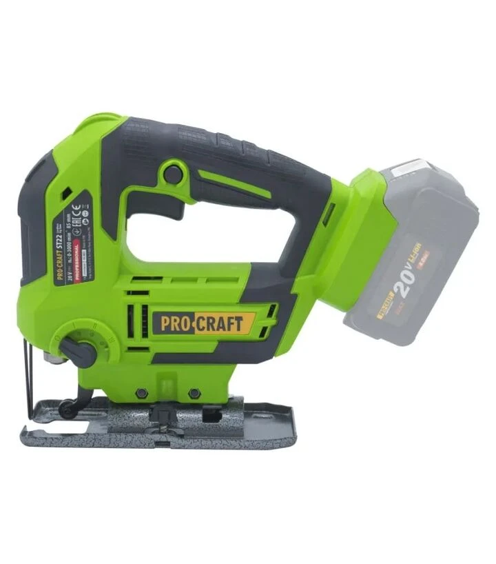 Електролобзик акумуляторний Procraft ST-22 без АКБ та ЗП (030229) Електролобзик Procraft ST-22 - це потужний та зручний інструмент для різання дерева та металу, що працює на акумуляторах 20 В (не входять до комплекту). Завдяки щітковому двигуну та електронному регулюванню обертів, лобзик може працювати на різних швидкостях, забезпечуючи точність різання. Швидкозатискний механізм дозволяє легко замінювати пилки без використання інструментів. Компактний дизайн та LED-підсвітка роблять його ідеальним для роботи в умовах поганого освітлення та обмеженого простору.