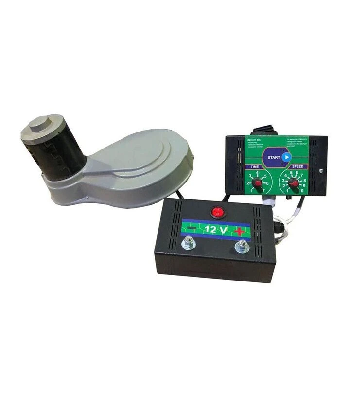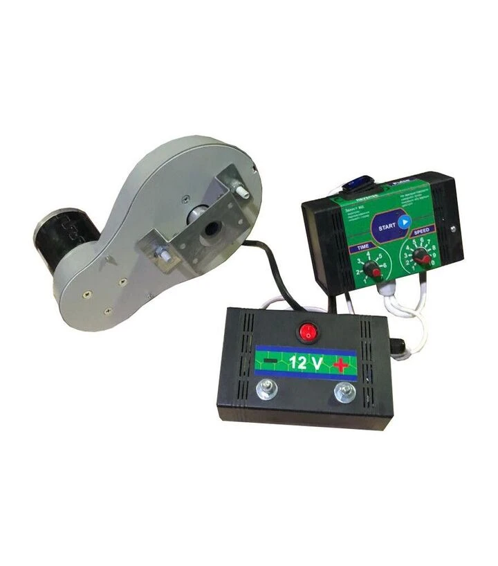 Електродвигун передає обертання на вал медогонки через ремінну передачу, що дозволяє рівномірно розподіляти навантаження. Імпульсний блок живлення перетворює мережеву напругу на стабільні 12 В зі струмом 8 А. Обороти регулюються пультом управління, що дає можливість налаштовувати швидкість залежно від типу рамок і ступеня їх заповнення.