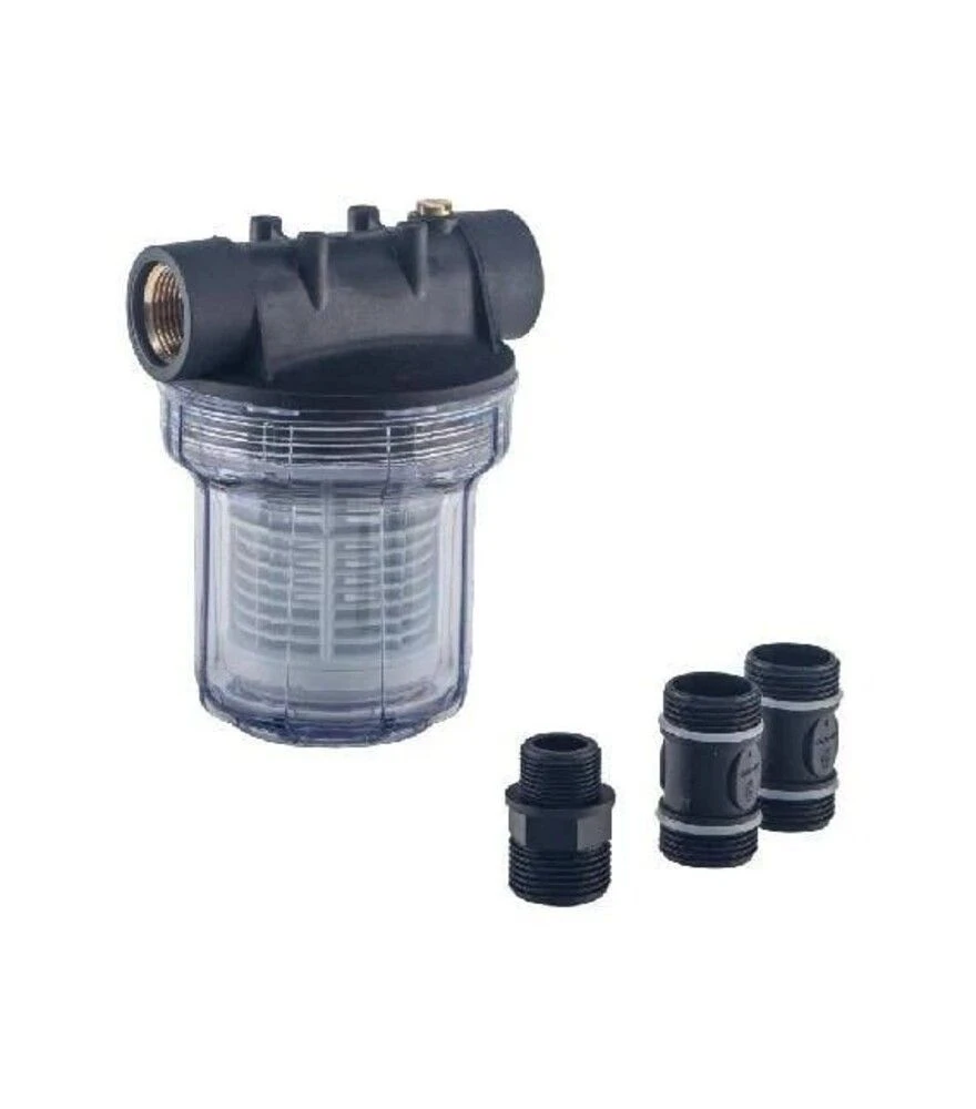 Комплектація: Знімний сітчастий фільтр, Подовжувальна насадка 1", Попередній фільтр, Різьбовий ніпель 1", Різьбовий ніпель 3/4"