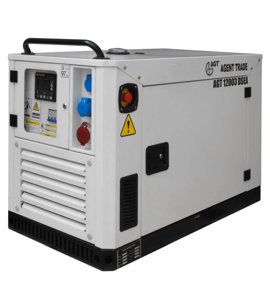 AGT 12003 DSEA має масу 280 кг та габарити 1230×675×770 мм, що дає змогу встановити його в окремому приміщенні або боксі. Трифазне підключення робить його придатним для техніки з великим споживанням, а вихідна напруга 220/400 В дозволяє використовувати різні типи обладнання. Мідна обмотка двигуна витримує інтенсивне навантаження, а повітряне охолодження допомагає підтримувати стабільну робочу температуру під час тривалих циклів.