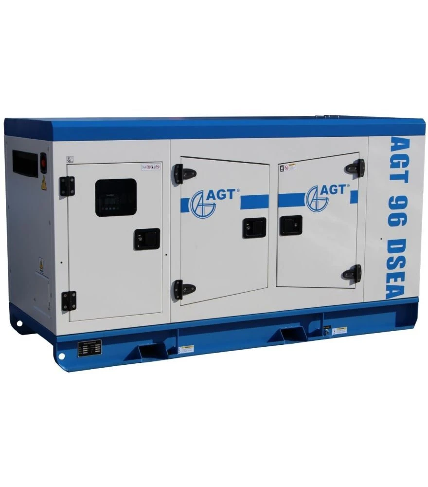 Генератор дизельний AGT 96 DSEA + ATS110EI/24AGT 96 DSEA + ATS110EI/24 - трифазний дизельний генератор, призначений для забезпечення стабільного живлення потужного обладнання у господарстві чи на виробничому майданчику. Має номінальну потужність 85 кВт та працює з вихідною напругою 380 В при частоті 50 Гц. Оснащений рідинною системою охолодження, електричним запуском і мідною обмоткою двигуна. Доповнений блоком автоматичного введення резерву ATS110EI/24, що забезпечує автоматичне перемикання на резервне живлення у разі відключення мережі, підтримуючи безперервну роботу обладнання.