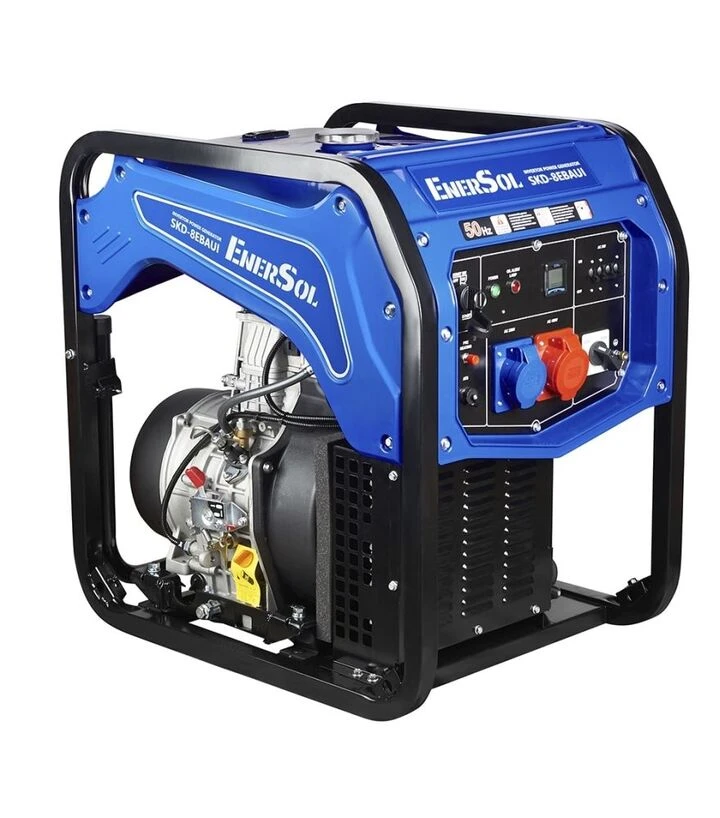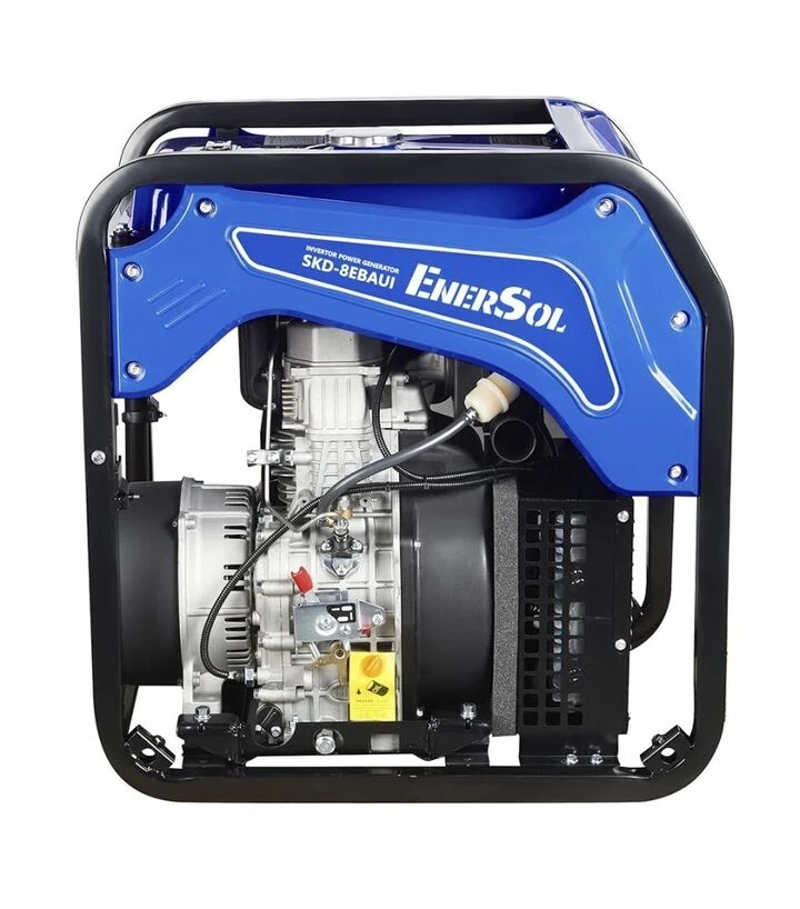 Генератор дизельний інверторний EnerSol SKD-8EBAUI (7.5/8 кВт) (SKD-8EBAUI)Інверторний дизельний генератор EnerSol SKD-8EBAUI призначений для стабільного живлення обладнання у побутових та професійних умовах. Потужності 7.5 кВт достатньо для роботи інструментів, техніки та систем освітлення, а підтримка однофазного й трифазного підключення робить модель універсальною. Інверторна технологія формує плавну та стабільну напругу, яка підходить навіть для чутливої електроніки. Мідна обмотка двигуна підвищує витривалість, а електричний запуск забезпечує швидке введення генератора в роботу. Стаціонарне виконання дозволяє встановити генератор у постійному місці на об’єкті.