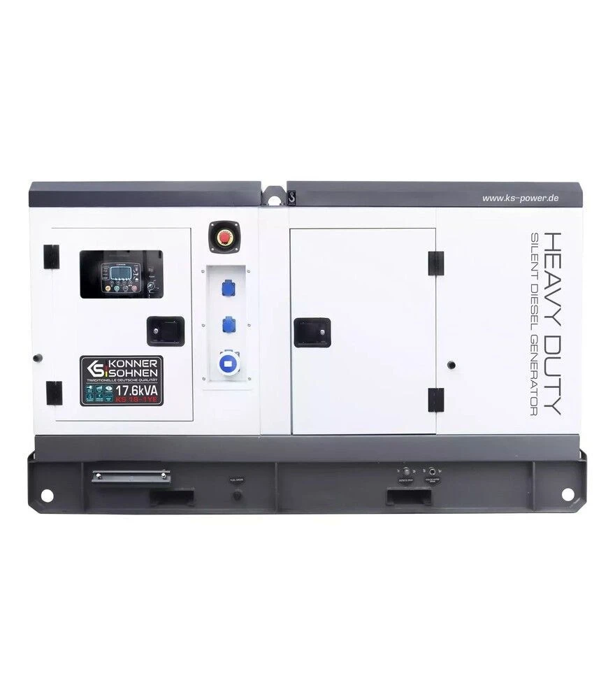 Генератор дизельний Könner&Söhnen KS 18-1YE використовується як стаціонарне джерело автономного або резервного електроживлення. Потужність 16 кВт дозволяє забезпечувати стабільну роботу освітлення, побутових приладів, електроінструментів та іншого обладнання. Рідинна система охолодження, синхронний альтернатор із мідною обмоткою та система стабілізації напруги AVR забезпечують стабільну генерацію електроенергії під час тривалої роботи. Система автозапуску дозволяє автоматично запускати генератор при відключенні електромережі, що робить його придатним для використання у системах резервного електропостачання.