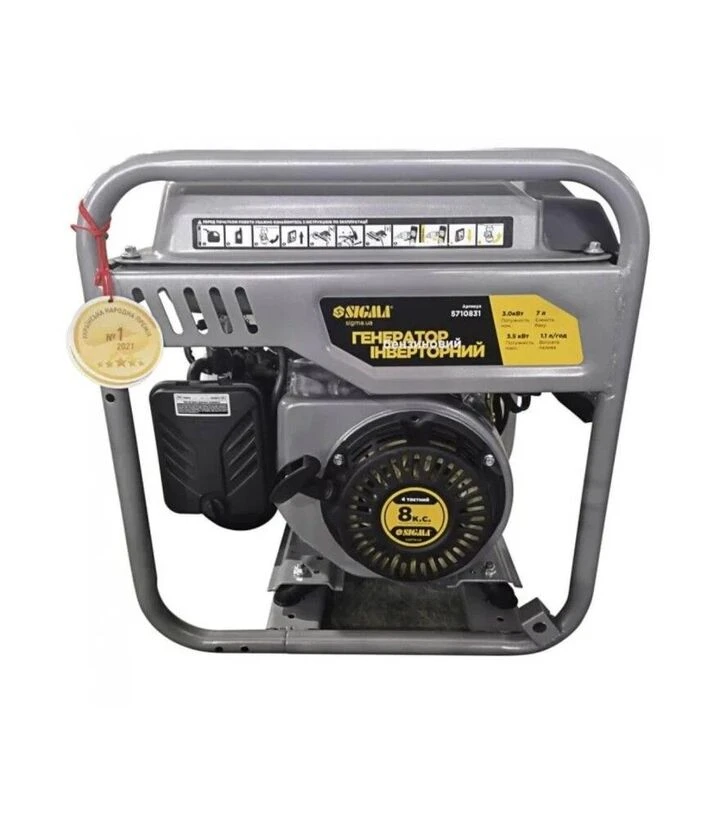 Генератор інверторний бензиновий Sigma 3 кВт (5710831) - це побутовий інверторний генератор для автономного енергозабезпечення побутової техніки, освітлення, інструментів та іншого обладнання. Він створений із врахуванням щоденного використання у приватному домогосподарстві, на дачі чи в поїздках. Номінальна потужність складає 3 кВт, що дозволяє живити побутові прилади, насосні установки, телевізори, зарядні пристрої та інше обладнання з порівняно середнім енергоспоживанням. Генератор має два виходи 230 В та один 12 В для різних типів навантаження. Пристрій працює на бензині, оснащений одноциліндровим 4‑тактним двигуном з мідними обмотками, що підвищує надійність і ефективність роботи.